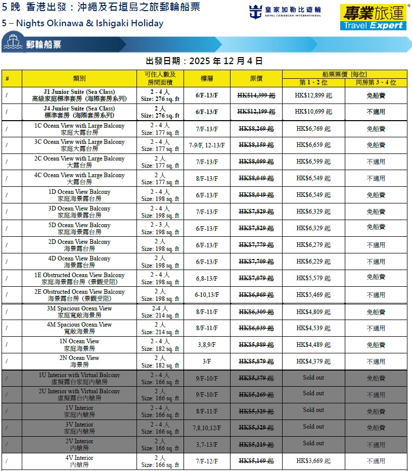 香港—那霸 (沖繩)—石垣島—香港 2025年12月4日