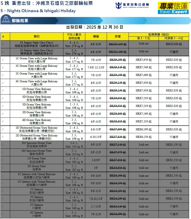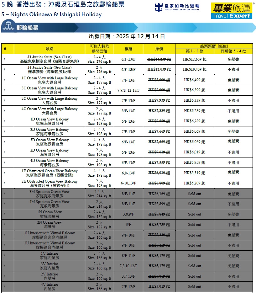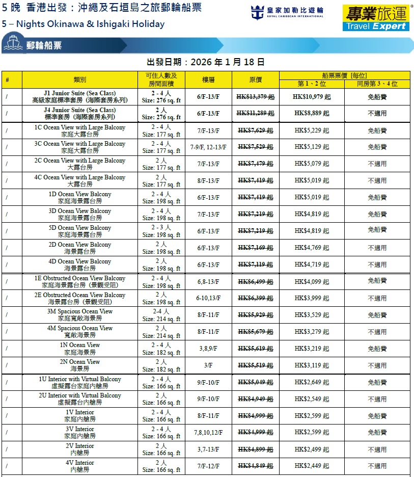 - 以上航程及預計到達/離開時間只供參考,一切以船公司最終公布為準。