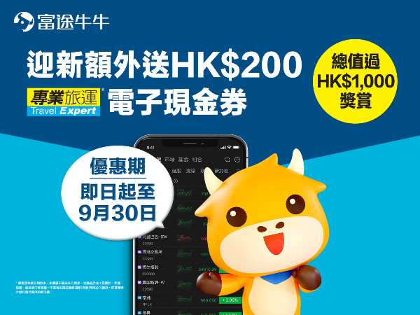 富途牛牛最新開戶優惠,由即日起至9月30日使用專業旅運優惠碼進行開戶,即送你總值高達HK$1,200獎賞!想領取優惠方法非常簡單,使用指定連結下載富途牛牛APP,即可獲得以下獎賞!