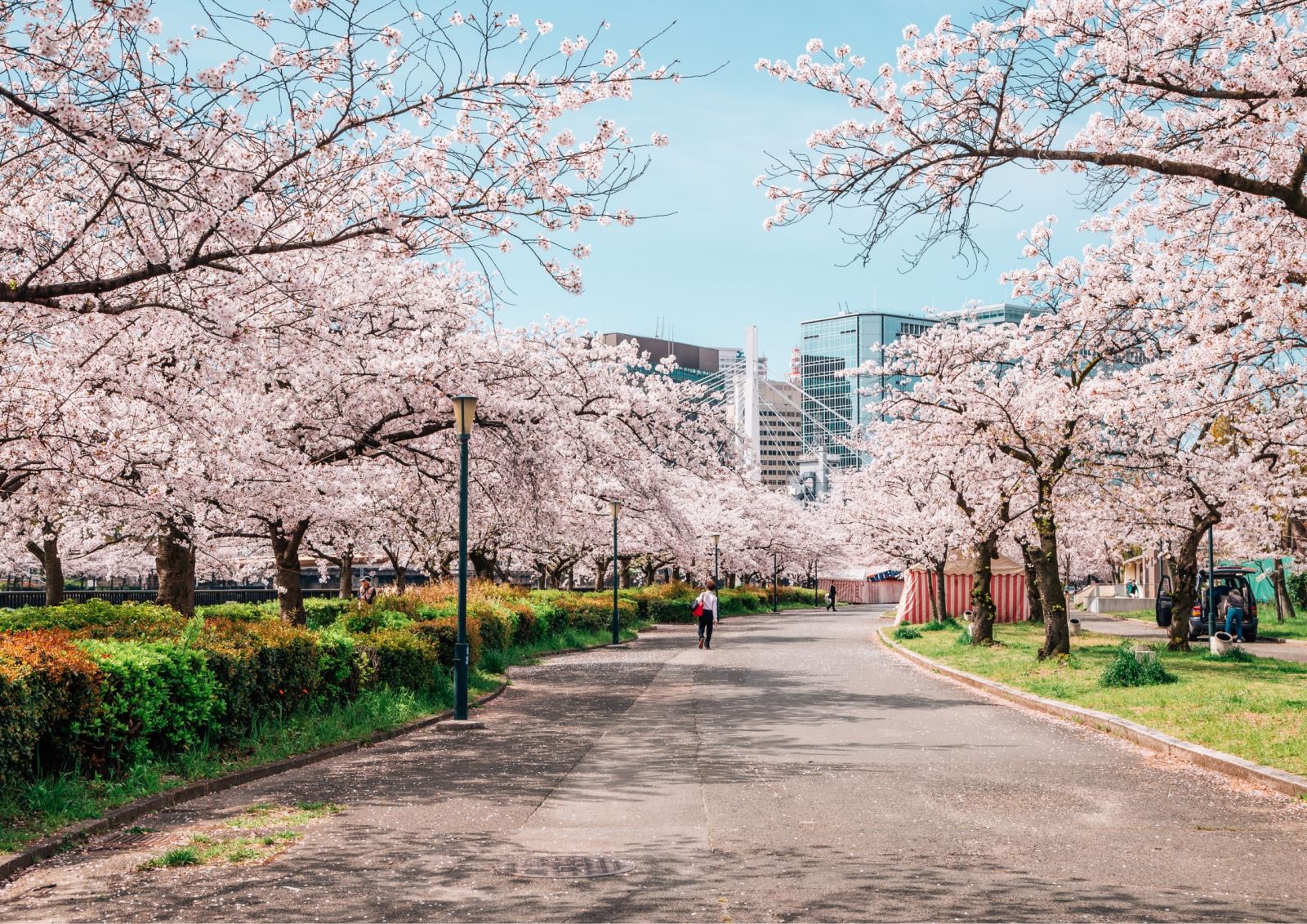 毛馬櫻之宮公園擁有倘大的消閒活動空間,平日不少人都會到公園散步、踏單車、或遛狗。每當花季來臨,長達 4.2公里的公園會滿種大大小小的櫻花樹,數量多達4,800棵,是絕佳的打卡觀光地點。