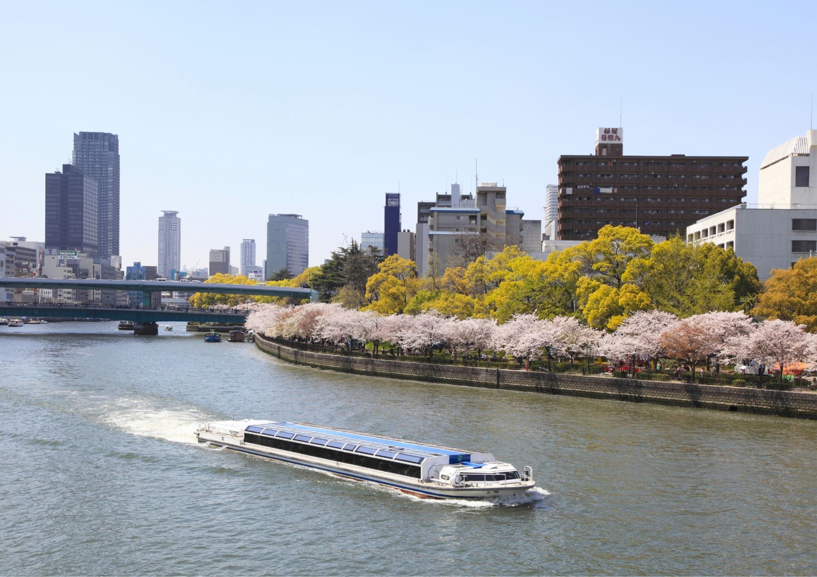 大川水道流經大阪市中心,是大阪知名的賞櫻景點,沿著河川漫步或乘坐腳踏車可以欣賞到於河道的 4,800棵櫻花。在3月、4月的櫻花季,當地更推出限定的櫻花船,途經造幣局及毛馬櫻之宮公園,多個賞櫻景點讓你一飽眼福。