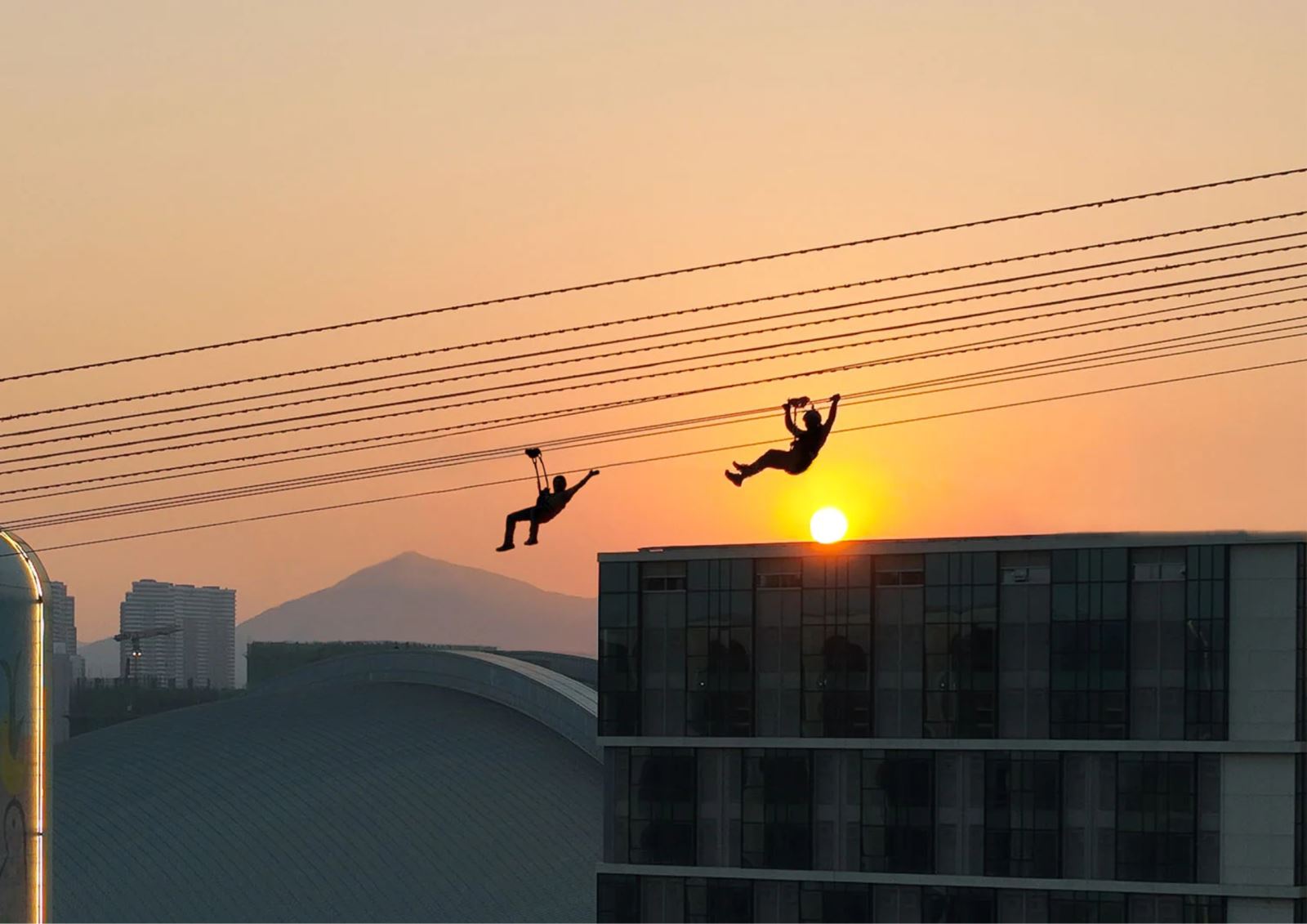 澳門飛索是世界第三長的城市滑索,全長388米時時速可達每小時55公里,其中一個最大的特色是結合了高空滑索、幻光效果及音效,從高而下滑落可以欣賞到澳門城市的景色,感受穿梭於路氹城的地標中。5組飛索並行排列,可以同時讓5位參加者於空中飛越,讓一家大小可以同時感受到飛索的樂趣。