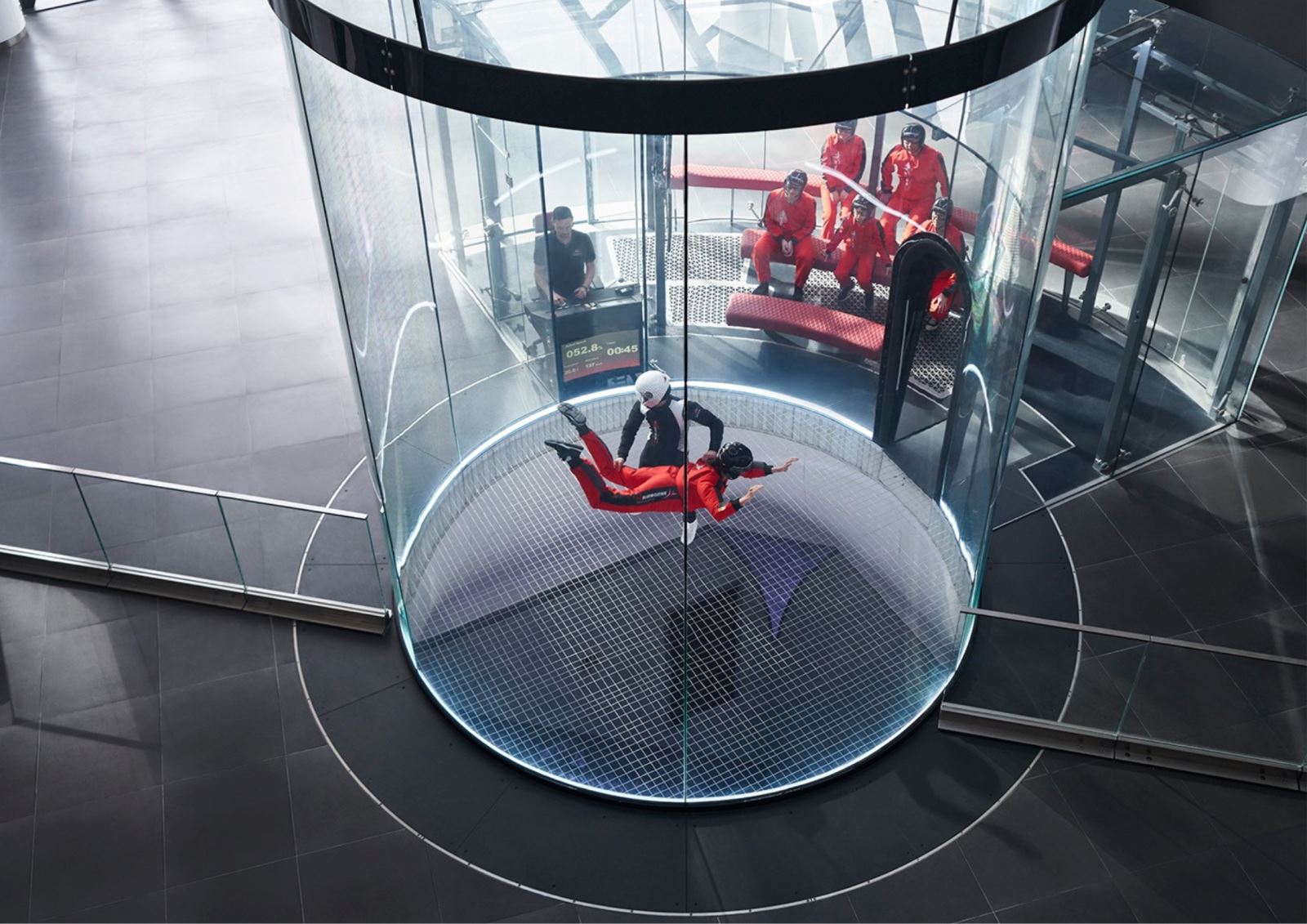 整個體驗過程歷時90至120分鐘,參加者可以在15米高的室內風洞設備內跳傘,模擬由12,000呎的高空降落至3000呎的飛行體驗。參加者需要先於體驗區內觀看教學短片,再配戴相關的飛行裝備,如護眼罩、飛行服頭盔等。導師會在開始前進行講解及提供基本腹飛姿勢訓練,接下來便可以開始體驗,教練會帶領學員走進風洞,從旁協助學員保持平衡,整個過程相當安全,而在活動最後你可獲得飛行證書留念。